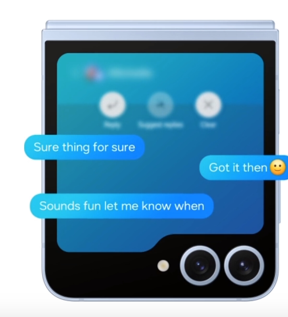 使用訊息智慧助理,可直接從封面螢幕發送訊息,AI會根據上下文生成建議回覆,只需從中擇一即可。