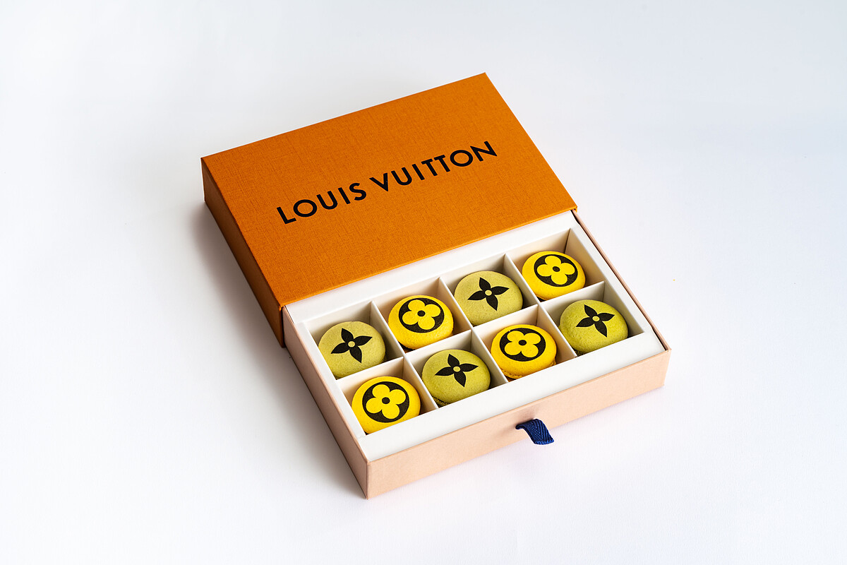六款獨家甜點靈感來自路易威登的Monogram花朵和高級珠寶系列。包括「焦糖・鹹花生達克瓦茲」、「雙柚凝乳塔」、「龍眼巧克力塔」、「薑汁黑糖可麗露」、「『金磚』費南雪」和「蜜桃『尼格羅尼』軟糖」。