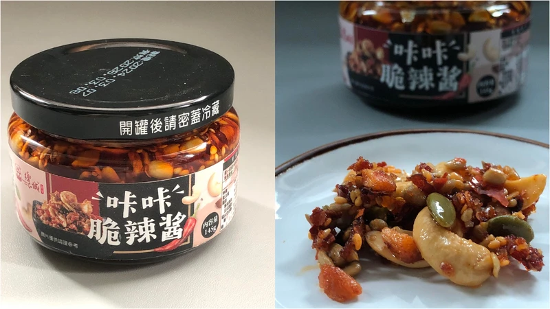 幹飯好朋友排行榜上,呼聲極高的堅果系脆辣醬,口感脆香辣兼具,被推為廚房料理不可缺少的神隊友。目前有多家品牌推出的堅果組合辣醬,內容風味各有千秋。這款主原料以辣椒、蒜頭、葵花子、腰果、剁椒醬為主的辣醬,除了基本拌飯拌麵好吃不雷外,也很適合拿來調水餃醬。而且內含香料八角茴香、小茴香、花椒,加入醬油黑醋一起做紅油炒手的底醬也非常棒,想要更認真烹調的話,用來當炒辣子雞丁的拌醬也很合適。