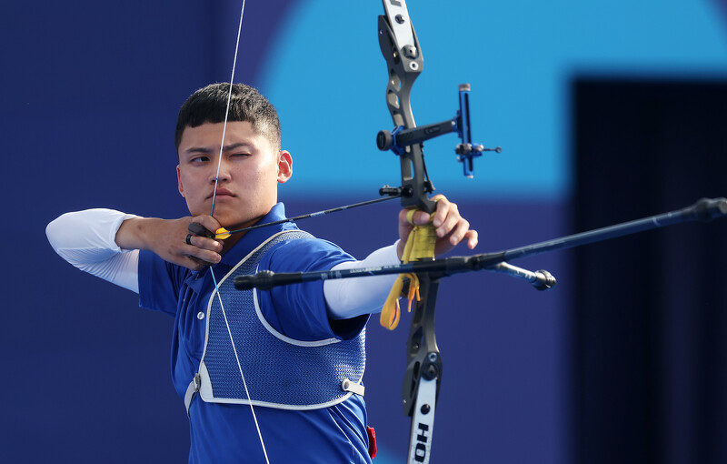 在巴黎奧運射箭男單項目,林子翔32強賽碰上南韓「大魔王」金優鎮,最後0:6吞敗,止步32強。