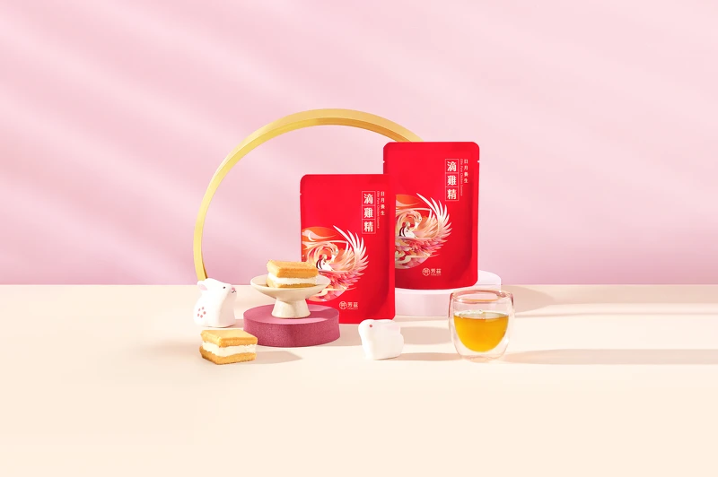 另一款由《芳茲》攜手知名糕餅品牌《簡單李》所聯名推出的「滿是喜月中秋禮盒」,則是將芳茲滴雞精與簡單李受國際 ITQI 一星獎認證的「焦糖奶油夾心餅」共同雙拼組合,歐洲天然奶油製成清爽不膩內餡、絲滑不黏牙的焦糖醬、香脆餅乾的三種甜蜜滋味,與芳茲滴雞精共同交織出守護健康活力的甜蜜祝福寓意,更不用說粉嫩雲朵與金色弧線設計的精緻禮盒外觀,呈現出獨樹一格的精緻質感風格。