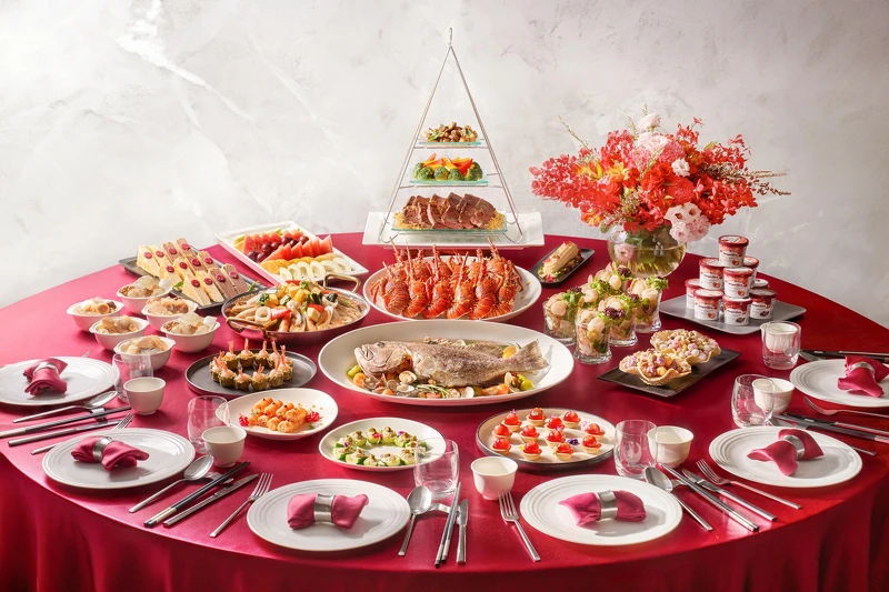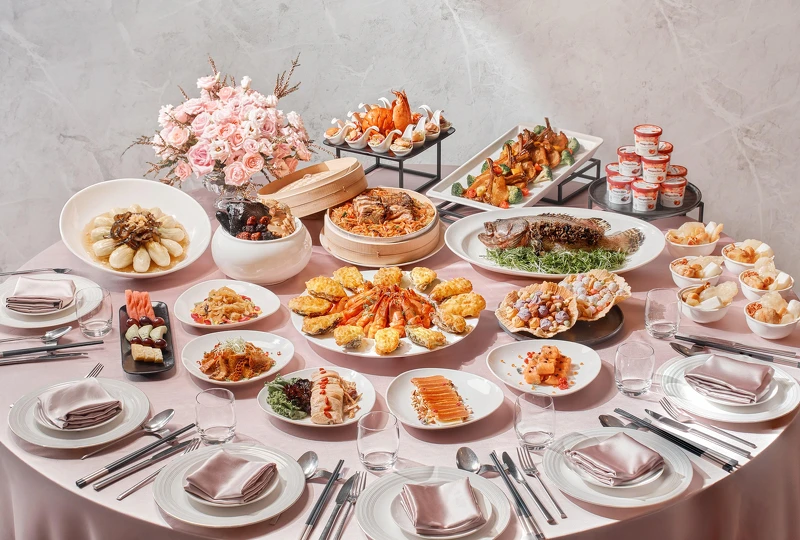 在2025年的婚宴菜色中,主廚團隊全面升級了食材及烹調方式。不僅保留了傳統的中式喜宴菜色,也融入了西式料理的創意精神,提供31800及28800的婚宴方案提供選擇。今年重磅推出的31800婚宴專案,就包含了開胃頭盤「金玉滿堂溢珠寶」、細膩煨蒸的冷盤「琉璃金采閃耀宴」、醇厚甘美的湯品「上湯檳茸海螺燉土雞」、以生鮮活龍蝦鋪上鹹蛋黃醬的「黃金鳳凰海港肥龍蝦」、老少咸宜又兼具風味的「野蔬玫瑰鹽烤牛小排」、膠質豐富的「珍饈夢幻鮮活嫩鮮斑」,以中式撈飯手法燴煮的「澎湃義式松露海鮮飯」,最後以法式千層派以及哈根達茲冰淇淋、當季的新鮮水果,為幸福喜宴畫上完美句點。