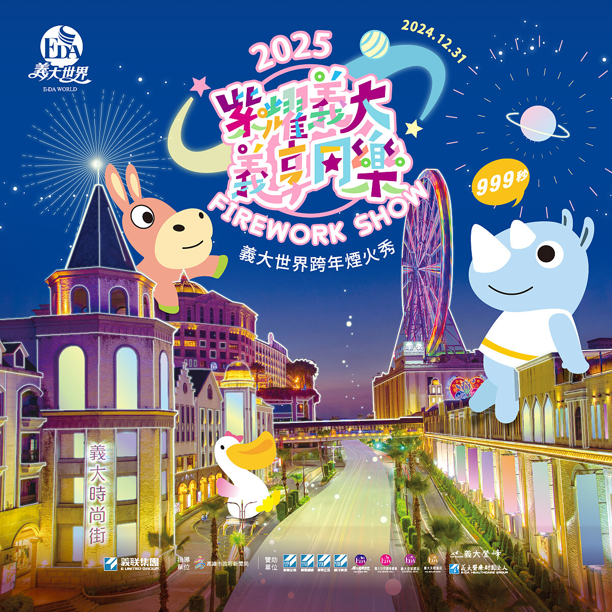 義大世界舉辦第16次跨年煙火秀,透露2025跨年煙火秀從內容到規模都帶來驚喜,999秒煙火會分為4大主題:「宇宙新章」、「龍蛇翱翔」、「未來之光」、「世界之舞」,並會在煙火中展示科幻藝術、新年幸福圖騰,會以全新創意帶領觀眾邁入2025科技年。