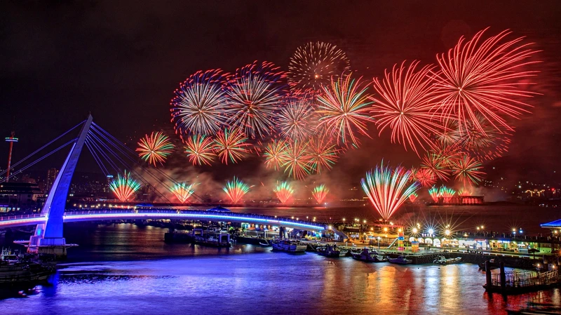 「2025閃耀新北1314跨河煙火」煙火秀以黃、藍、綠、紅四大色系、打造四大篇章煙火,並會融合全新創作音樂,展現新北市兼具自然美景與人文情懷的多重魅力。施放前倒數30秒,會有全台獨家「雷射浮空倒數」、淡江大橋光雕秀,交織出燈光與色彩流轉的視聽覺雙重饗宴。精彩亮點更包括百發連發的跨河開幕秀、首創雙尺玉與水中爆破特效、以彩虹牆和五色牡丹煙火打造的震撼視覺效果。整體燃放面寬達一公里,磅礴氣勢值得親眼見證。