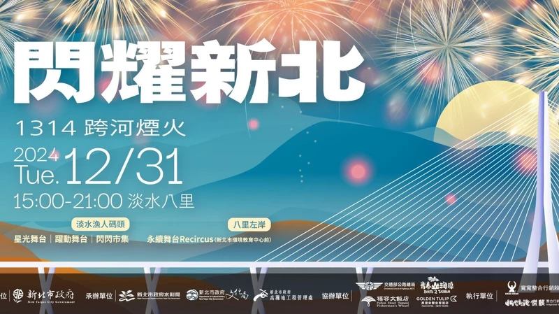 「2025閃耀新北1314跨河煙火」主持陣容再次由黃鐙輝、曾子余、梁舒涵組合擔任,其他卡司還有宇宙人、U:NUS、卓文萱、板凳樂團、范逸臣、孫淑媚、陳勢安、許富凱、葛西瓦、OPEN!家族等。12/31下午3點便會在淡水漁人碼頭、海關碼頭及八里左岸陸續展開,現場規劃多個主題區域,包括古蹟舞台、星光舞台、躍動舞台及永續舞台Recircus等,讓民眾能享受歌手演出、馬戲表演、親子互動、美食胖卡及特色市集。