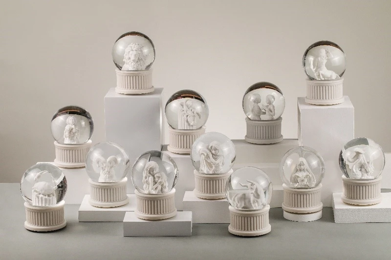 JARLL水晶球2024首次推出的12星座系列,也是M編認為更具獨特意義的款式,把代表各星座的圖像,融合仿希臘神話、中古希臘羅馬時期的雕刻工藝,搭配簡約高雅的潔淨色調,呈現出星座宮的神聖出塵美感,不單只是星座象徵,更成為一個個美麗的藝術作品。
