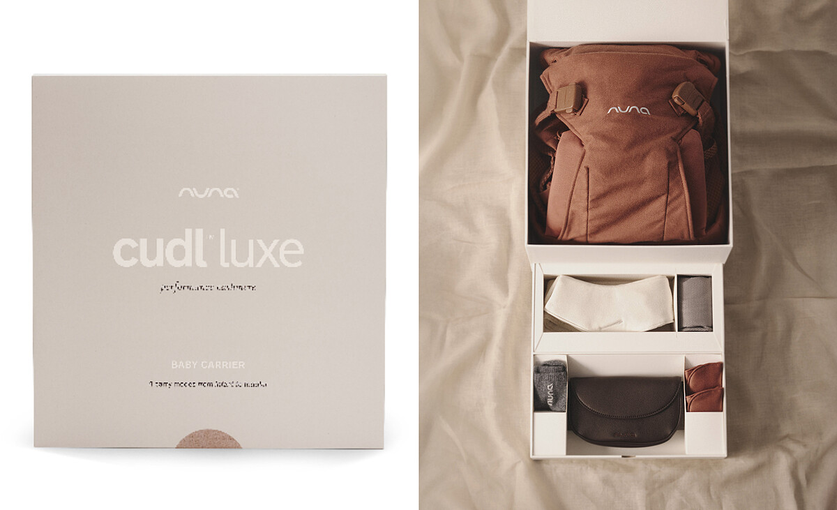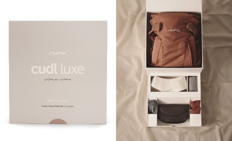 值得一提的還有「CUDL luxe 喀什米爾嬰兒揹帶」的精緻收藏盒,除了揹帶本身,還搭配了獨家Nuna喀什米爾羊絨毛嬰兒襪、網狀洗衣袋、可拆式皮革收納包與揹帶收納袋等精緻實用物件,充滿靜奢高雅格調,超級適合作為新生兒剛降臨的父母祝福獻禮,這不僅僅是一件育兒用品,更是一份愛與祝福的傳承心意。