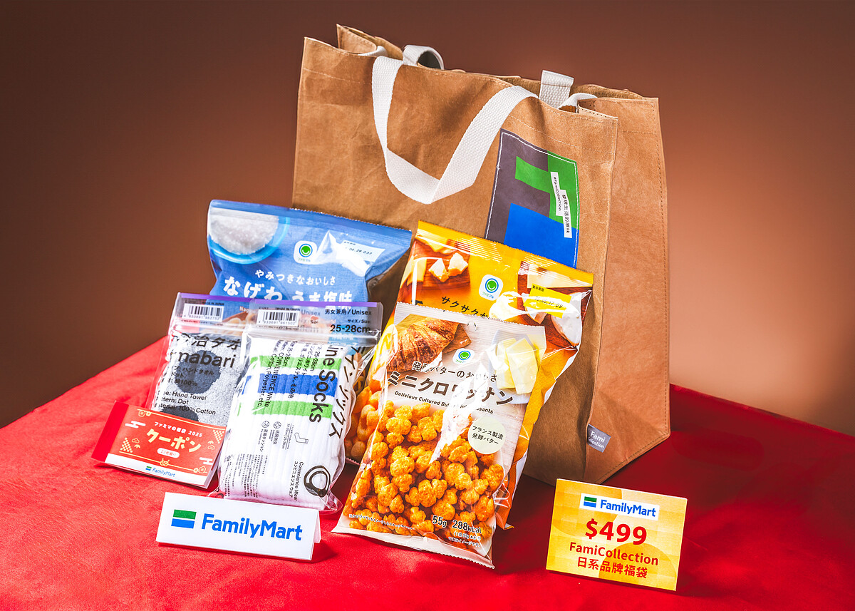 ‧ 首次推出日本「全家」直送福袋,售價 499元,內含網路爆款零食與今治手帕等高質感好物。