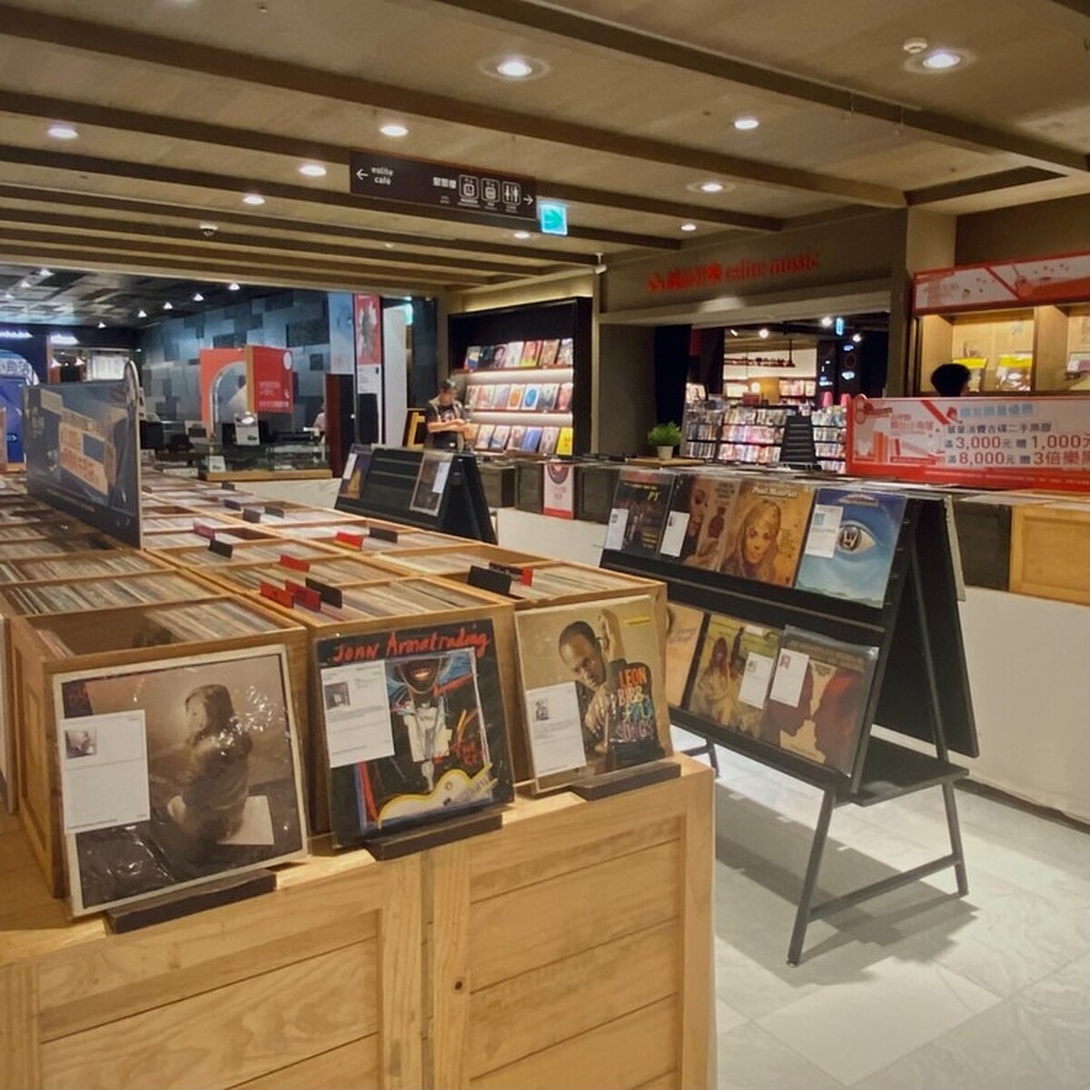 特別是牆上陳列著琳瑯滿目的黑膠和CD,不同於一般唱片行完全用字母順序或是其它熟悉的排序,而是用華語、日語、西洋等類別去排列,所以有可能同一層架上出現日本長青歌手竹內瑪莉亞與日本新生代創作歌手藤井風的時代交錯感。