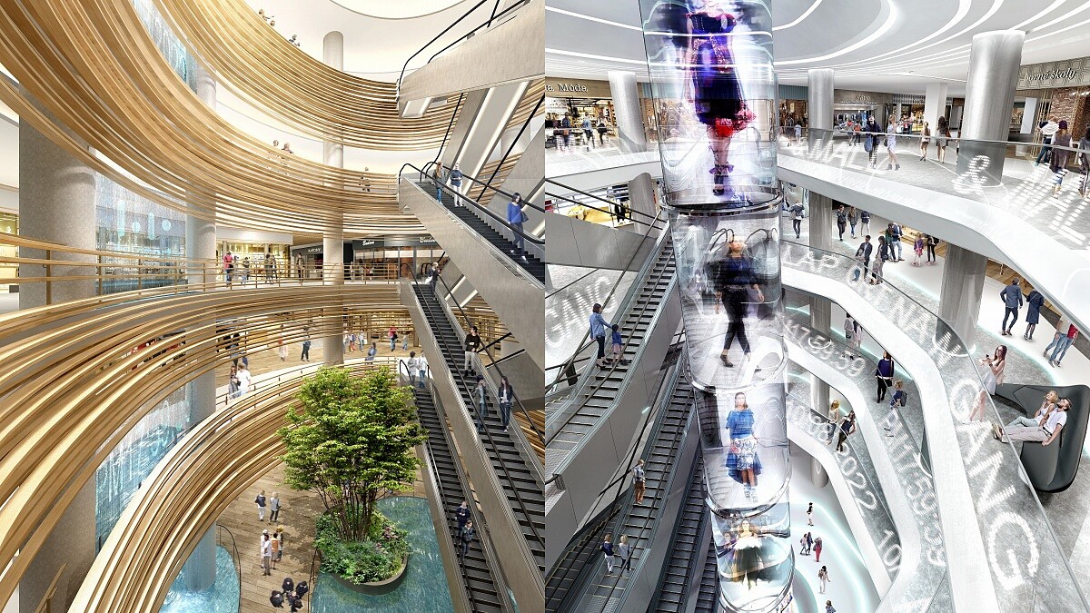 南港LaLaport以「結MUSUBI」作為內裝設計概念,呈現集結過去與未來、自然與都市、台灣與日本等元素於一身,帶出融合多元的價值感。空間亮點包含挑空區的植栽、瀑布造景,結合木材溫潤質感、柔和光線,交織出大自然的療癒氣息。另一處「Future Court」則導入最先進數位技術,把B1延伸至4樓高的LED圓柱型螢幕,播放著充滿爆發力的影像,帶給顧客震撼、未來感、摩登、新潮體驗,必須親自走訪一遭才能好好領略。