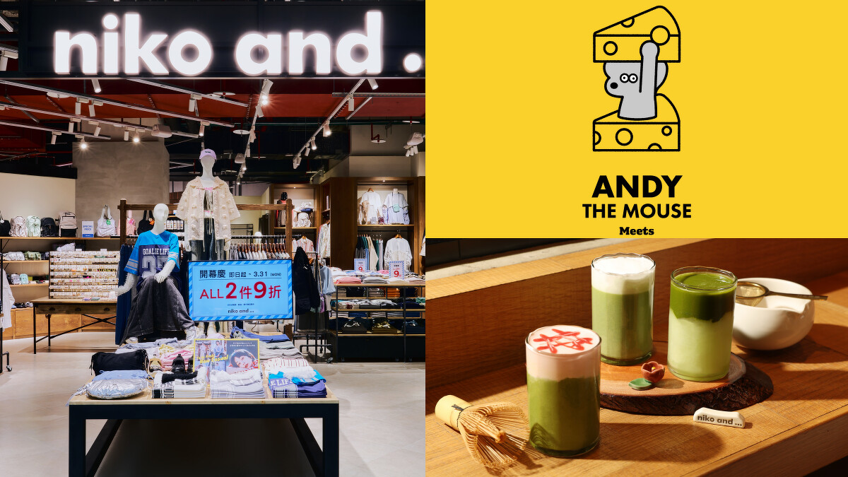 集結服飾、雜貨、家具、餐飲於一身的niko and…,於南港LaLaport開設全台14間實體店鋪。除了同樣能讓大家盡情挖寶購物外,更睽違多年引入niko and ... COFFEE外帶限定店,並攜手辻利茶舗推出三款春季風味飲品:草莓奶蓋抹茶冰沙、青蘋果抹茶飲、抹茶牛奶。還販售日本插畫家松本セイジ(Seiji Matsumoto)筆下角色 「老鼠ANDY」限定聯名系列,像是抱枕、造型小包、短T、鴨舌帽、收納小袋等,快找時間去看看。