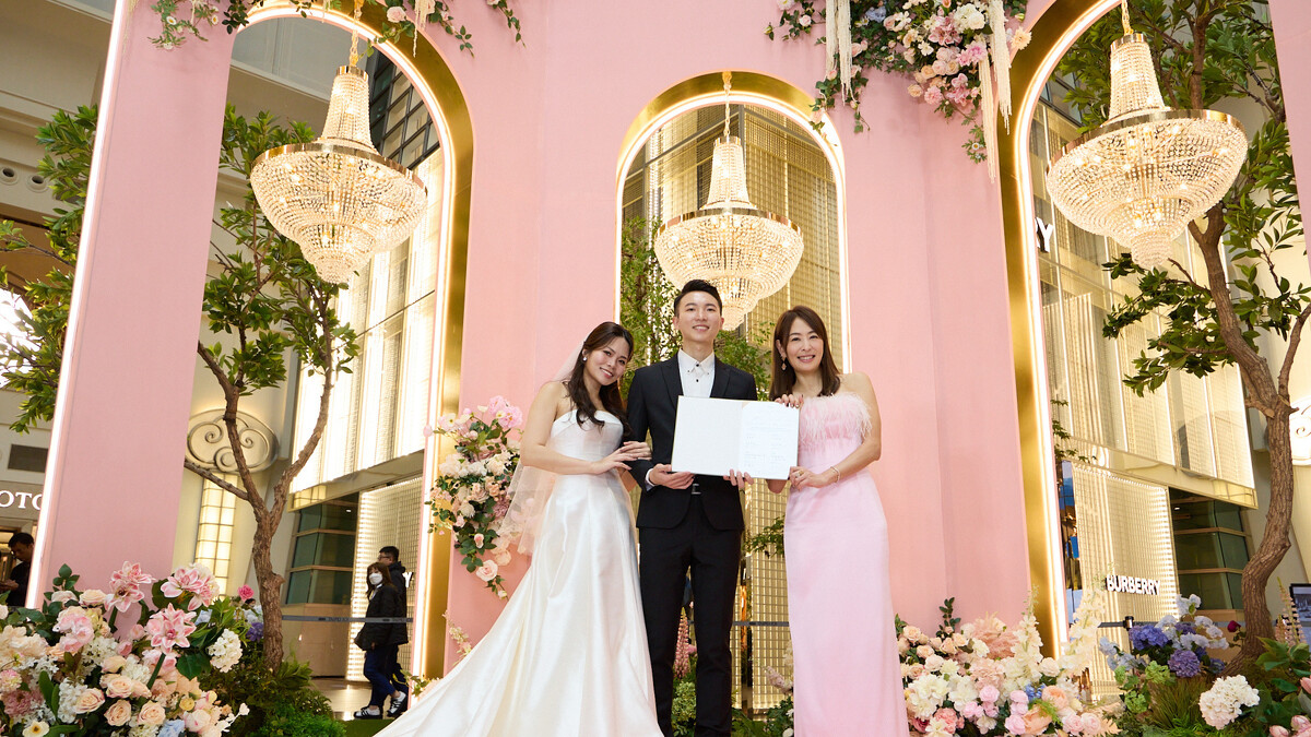 現場參與佳偶身穿浪漫婚紗禮服,在華麗的台北 101 歐式花園廣場,互相交換信物、訴說結婚誓言。台北 101 是眾多新人夢想拍攝婚紗的指標聖地,2025 首次舉辦頂級聯合證婚典禮,主打精緻體驗,結合館內精品與餐廳禮遇,有別於市場上其它聯合婚禮企劃,為台灣即將步入婚姻的新人,或想重溫愛情的夫妻,提供前所未有的高端婚禮精緻體驗。