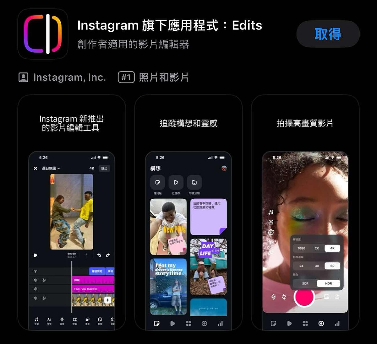 Edits是Meta自己出推出的免費影片編輯器,擁有基本的影片剪輯功能,讓創作者可以直接在手機上輕鬆將想法轉變為影片,也被認為是與CapCut正面迎戰的全新App。