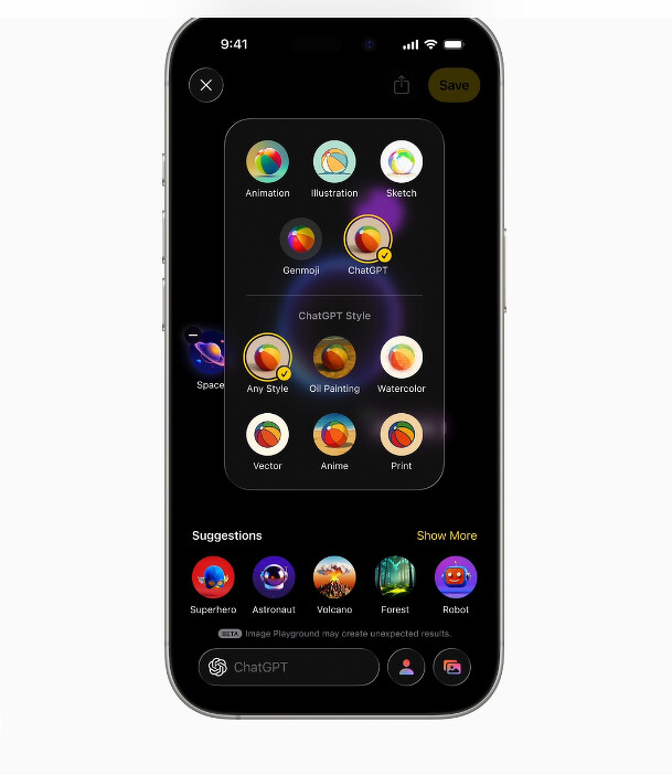 Genmoji 和「影像樂園」為使用者提供更多自我表達的方式,包括將喜愛的表情符號、Genmoji 和描述內容組合在一起,創造出新的圖像。
