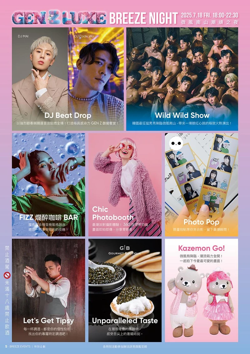 邀請微風男神DJ Mai與人氣型男DJ Code Wu,以強烈節奏與精選音浪點燃全場,讓派對氛圍一路飆到最高潮!