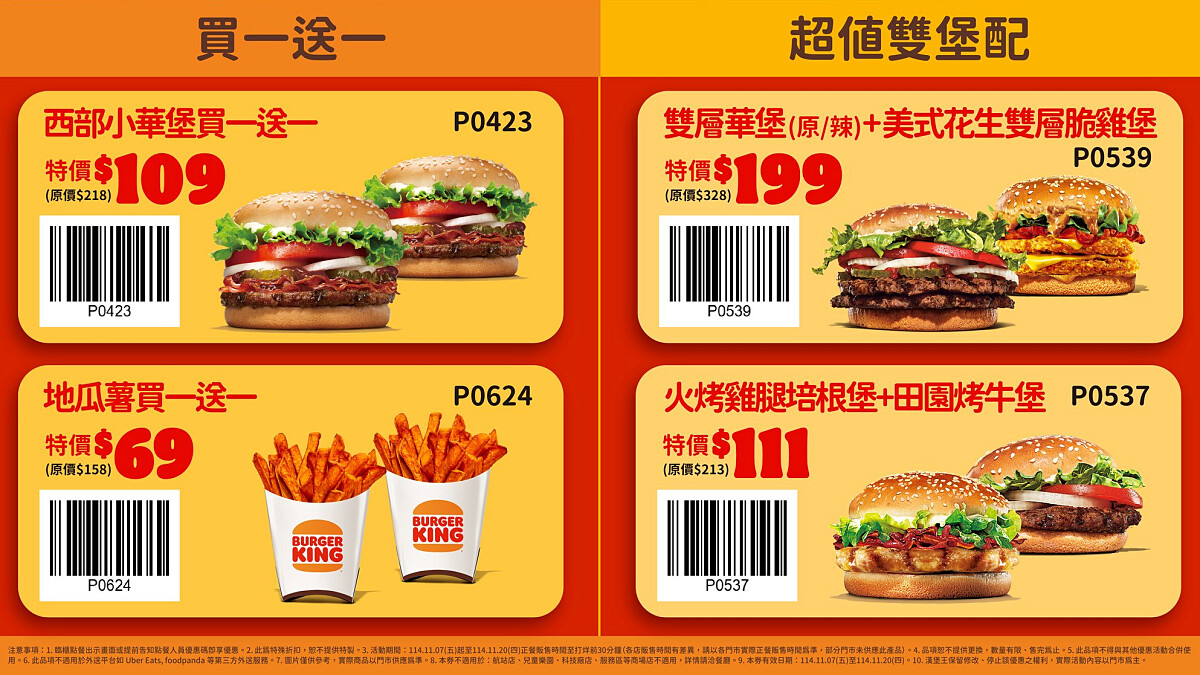 雙11美食優惠|漢堡王