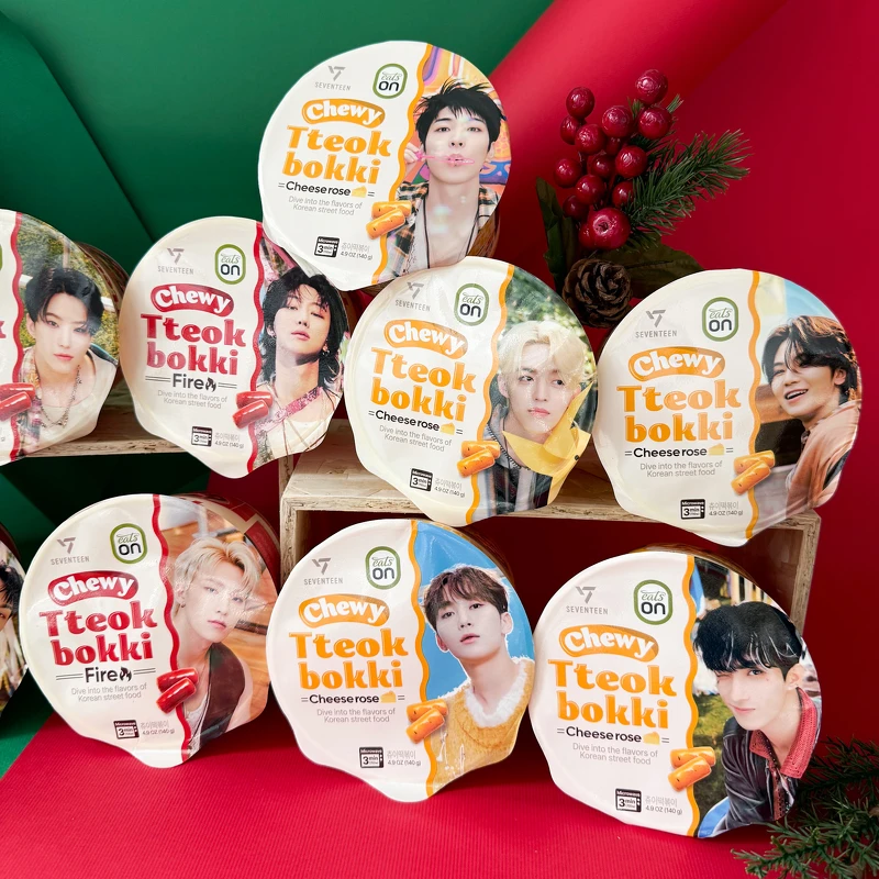 7-ELEVEN獨家引進韓國人氣男團SEVENTEEN代言的辣炒年糕(辣味/起司),每碗碗蓋都印有團員肖像圖片,讓粉絲在享用道地韓式風味的同時,也能蒐集偶像周邊,此外11/26~1/6新品售價99元,克拉們可把握時間去嚐鮮。