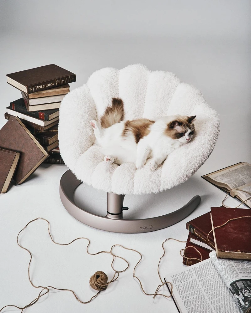 Shell寵物安撫搖椅則是Tavo給予敏銳且需要安全感的貓咪或小型犬的療癒之禮,優美時尚的外觀設計,加上注入了細膩上乘材質與貼心機能巧思,讓人在經過一整天忙碌節奏結束堆積待辦事項,於傍晚歸家或日常休憩的居家時光,看著輕柔發出喵嗚聲的貓咪跳上安撫搖椅的幸福樣貌,彼此愜意共處一同完成了ON&OFF的切換儀式。