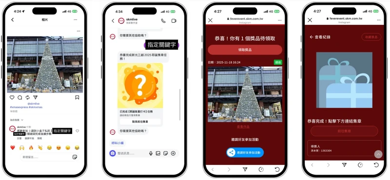 各分店精心佈置的耶誕裝置與耶誕樹,絕對是IG美照的最佳背景!只要拍照上傳至Instagram貼文(須設為公開),標記 @skmlive + #xmasexpress #skmxmas,收到系統訊息就完成集章囉。