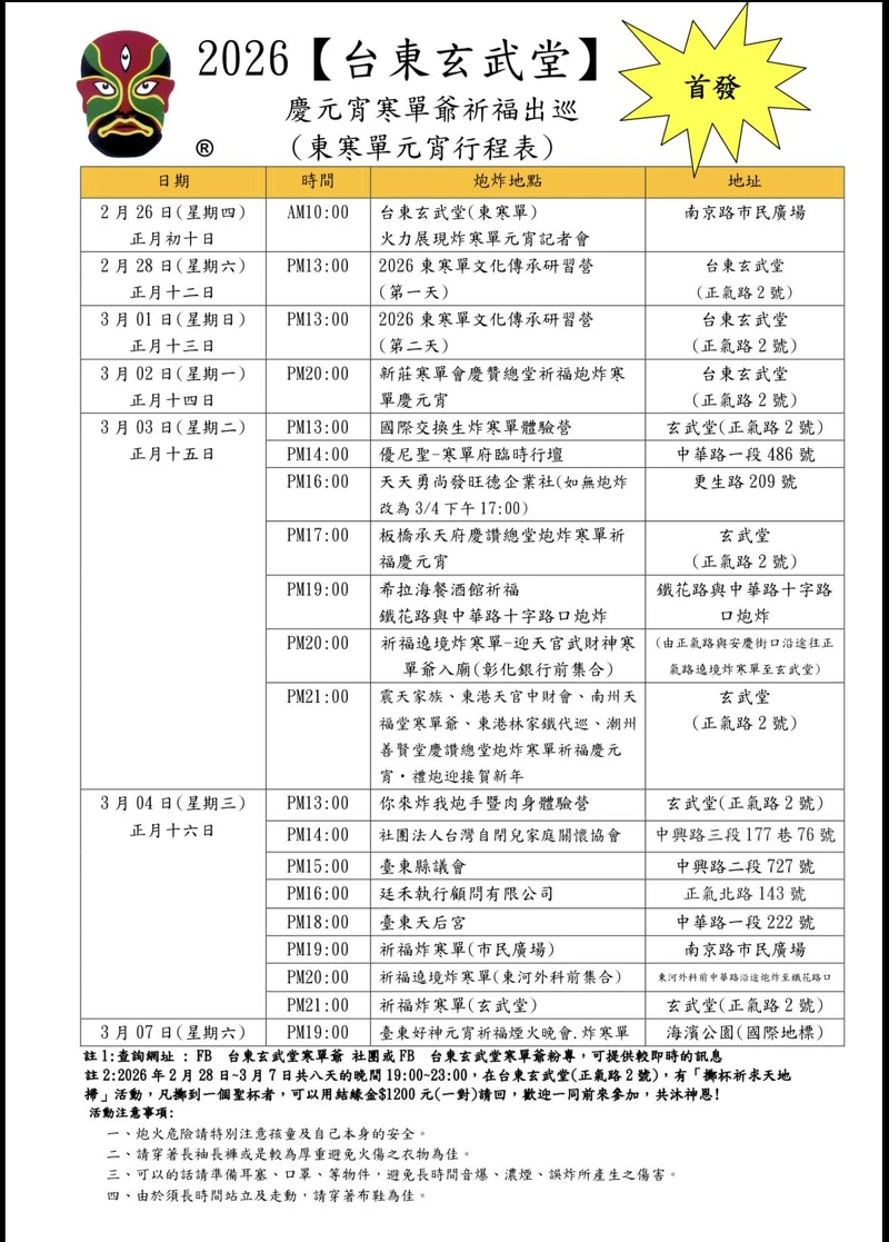 2026台東元宵|炸寒單活動日程