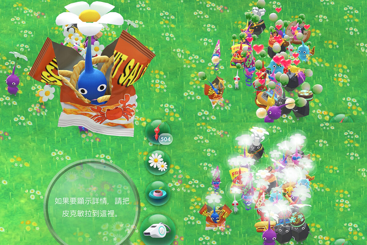 2.餵食精華與採收:餵食皮克敏精華,採收它們頭上的花瓣。