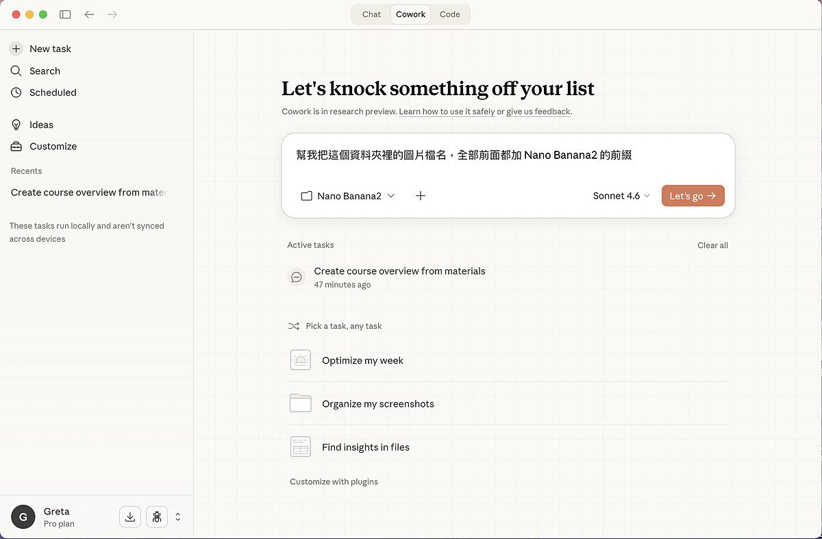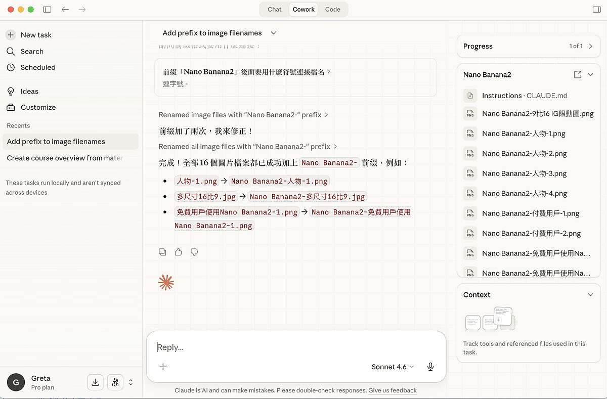 以下示範利用 Claude Cowork一次更改檔案名稱: