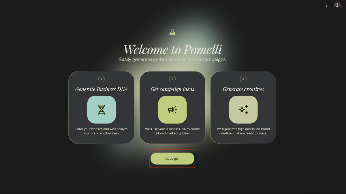 打開 Pomelli ,同意使用條款後,會看到這個畫面,點「Let’s go!」繼續。