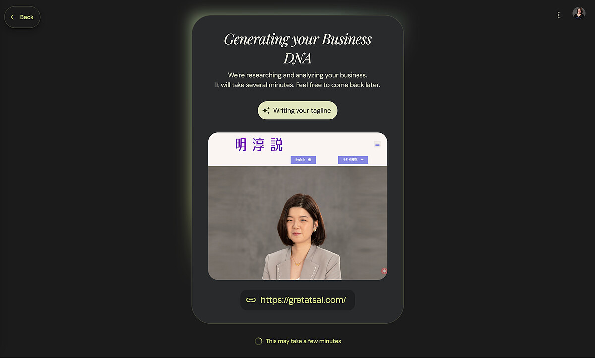 Pomelli 開始分析這個網站的品牌 DNA,需要稍等幾分鐘,可以看下方圓圈圈觀察進度。