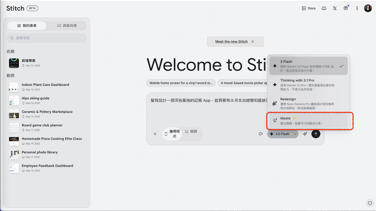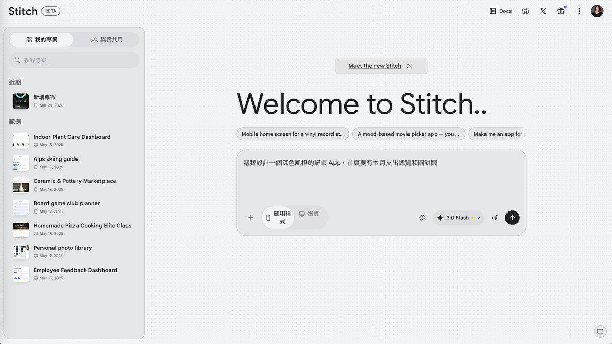 Stitch:用講的就能設計 App 畫面