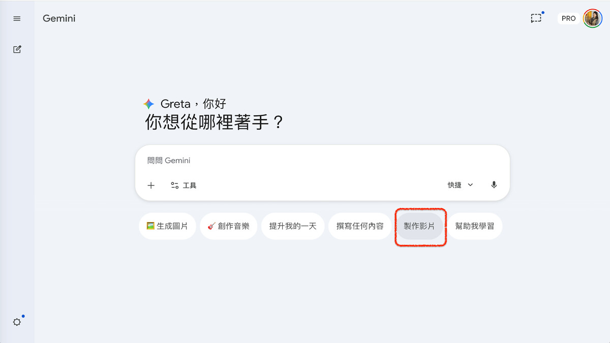 如果你是 Gemini 的付費用戶,直接進入 Gemini ,就可以生成影片。