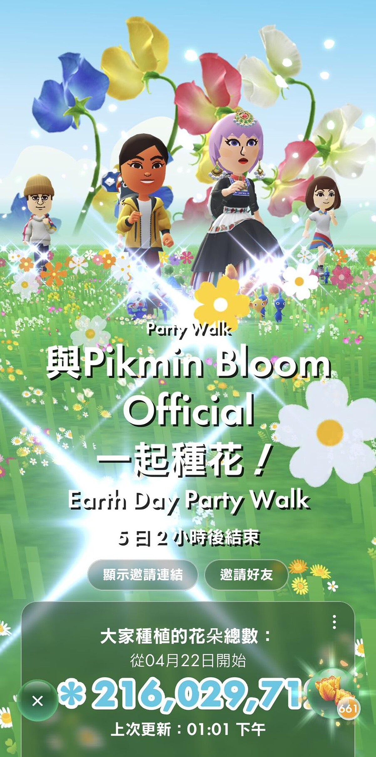 散步途中記得開啟AR模式,讓你的皮克敏與路邊真正的花朵拍下合照。拍完之後,如果想跟全球玩家一起慶祝,可以加上#EarthDay_PB標籤,讓社群媒體也跟著開滿一片花海,這種分享的方式讓活動的喜悅從個人延伸到整個社群。小編覺得像這樣的活動最可貴之處就是它把環境議題拉近到每個人的腳步之間。在忙碌的日子裡很容易忽略路邊的花草,而這次Party Walk正好給了我們一個理由抬頭看看四周,讓散步多了一點溫度與回憶。當然安全永遠擺在最前面,遊玩時請留意周遭環境,遵守當地法規,讓這段從4月22日到27日的Party Walk成為愉快又安心的體驗吧!