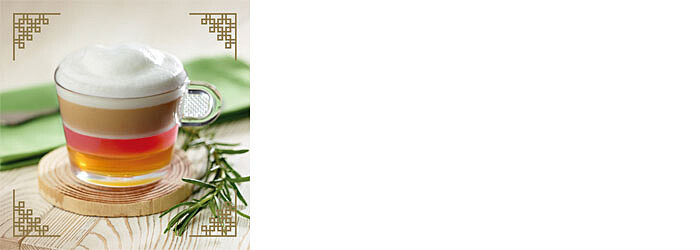 新鮮果汁與蜂蜜結合的卡布奇諾,濃厚的奢華奶泡,散發著地中海獨有的草本香氣。