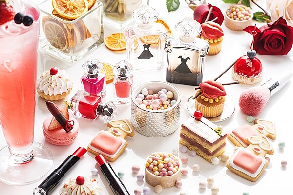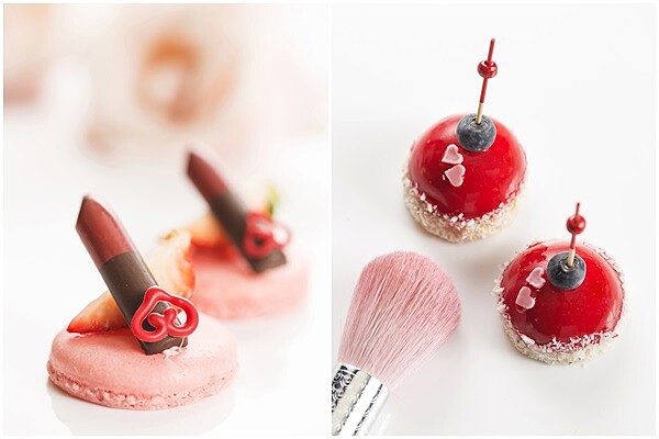 位居台北遠東國際大飯店第38樓的馬可波羅酒廊內,由國際五星飯店與彩妝品牌法國嬌蘭合作首例,開創彩妝系列甜點,也掀起市場上彩妝下午茶風潮!香格里拉台北遠東國際大飯店甜點主廚團隊以嬌蘭小黑裙香氛系列新品「小黑裙我的香氛唇膏」與「小黑裙我的的香氛指彩」為靈感發想,設計出款款粉嫩嬌俏、細緻可口的「嬌涎欲滴 - 小黑裙香氛彩妝下午茶」,每樣甜點之間充滿了少女唇瓣間的紅潤色彩、巴黎女性的風格裝扮、還有主廚特別與蘊含花果香調的嬌蘭唇彩相呼應的精緻甜點,再吃下一口之前都忍不住多與它合照幾張!