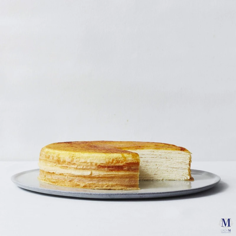「經典法式千層蛋糕」可謂Lady M最知名的甜品。以至少20層的手工薄餅搭配輕盈鮮奶油,續焦糖化蛋糕表面至金黃狀,入口時,美味度令人難以抗拒,層層交錯的薄餅與鮮奶油化於舌尖,尾端喉韻尚留一抹微甜。