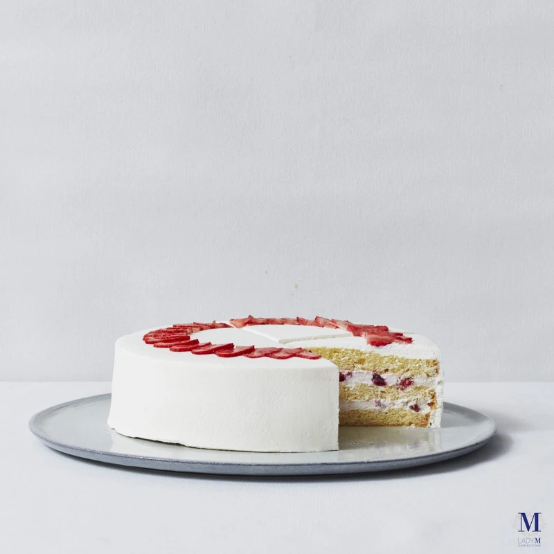 對於熱愛草莓蛋糕的甜點迷來說,此款蛋糕只能用「必吃」來形容。Lady M的草莓蛋糕採用從日本進口的高品質麵粉,才得以製作不同以往的香草海綿蛋糕體。顆顆垂涎欲滴的草莓綴於如白雲般輕盈的打發鮮奶油上,入口味道純粹且不膩。