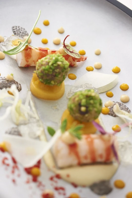 以野生明蝦搭配花枝及特製蔬菜醬的「Lumiere 彩」