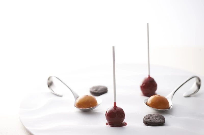 「愉快的時刻」則是形成球體的液狀布丁搭配巧克力及橘子風味的餅乾。饕客們千萬可不能錯過這場結合藝術與美味料理,無限魅力的「法式米其林藝術饗宴」。