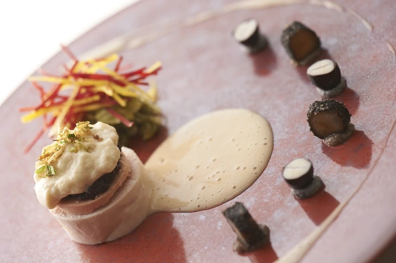 「美味」則是以雞胸肉搭配鴨肝低溫烹調,再搭配黑色蔬菜與特製濃縮雞汁、以57度低溫烹調3小時黑鮑魚搭配新鮮貝類的「綠泉」