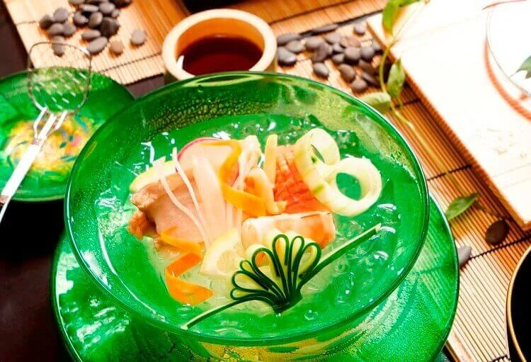 日勝生加賀屋總料理長柴崎徹表示:「此次料理是以京都川床為意象,並以京都夏天的食材之王「鱧魚」做發揮,搭配器皿選擇,讓客人從視覺到味覺,都得到冰涼的享受。」(鱧魚俗稱海鰻)