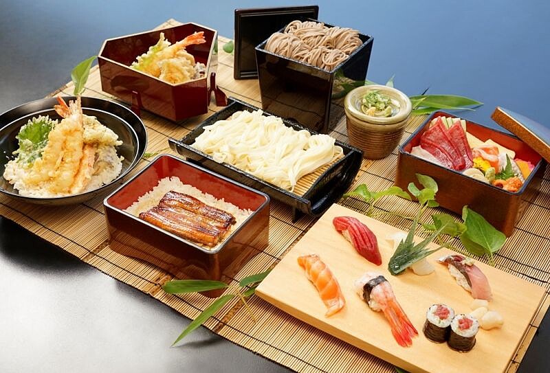 「蕎麥麵、烏龍組合午膳」豪華主餐五選一有鰻魚丼、握壽司、散壽司、天丼及天婦羅等可以選擇,除了冷麵大餐外,北投加賀屋更結合泡湯推出一日遊行程,大眾湯午餐一日遊優惠價每人NT$2,080起(原價NT$2,875),雙人湯屋午餐一日遊專案NT$4,180起(原價NT$5,550),時間只到9月30日。