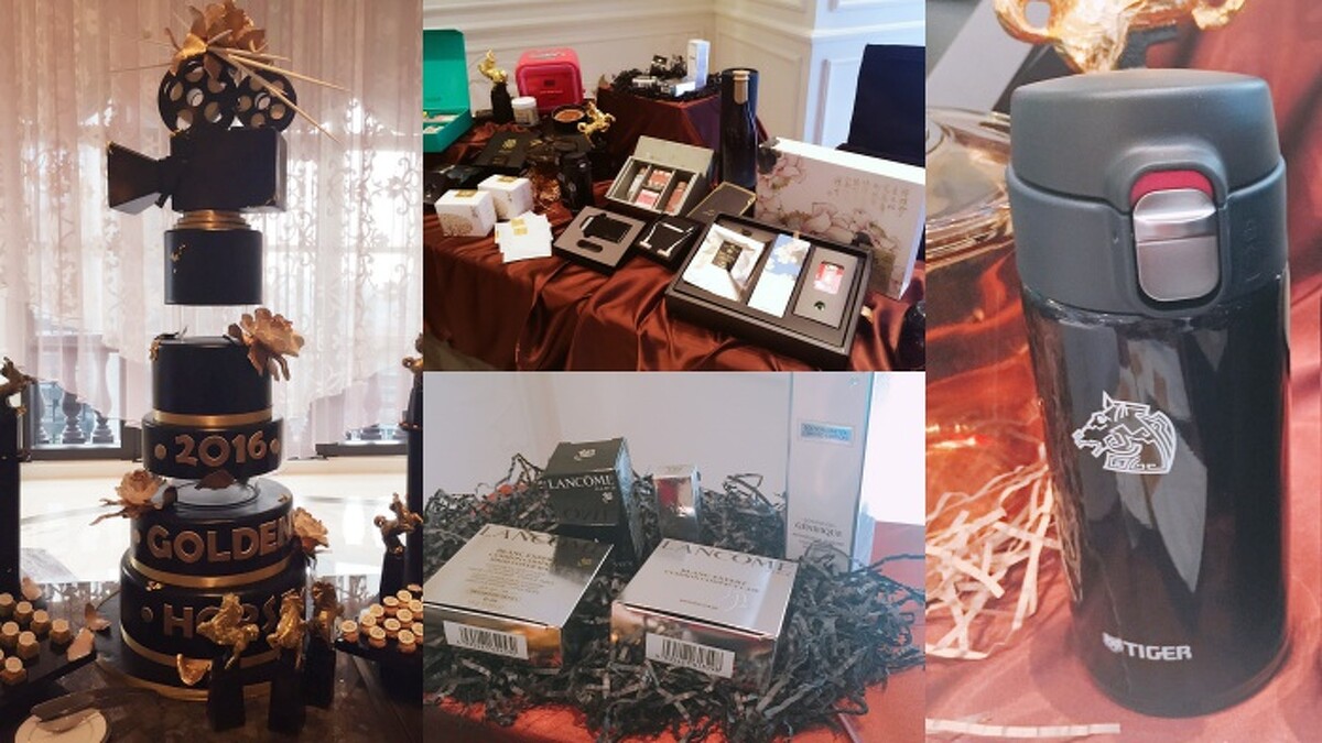 而今年的金馬獎貴賓伴手禮包含Lancôme彩妝保養品組、虎牌保溫瓶、糖村的鳳梨酥與法式牛軋糖禮盒與AQUAGEN黑耀金瓶氣泡水,還有不少以台灣在地為主題的禮品,包含以當地小農食材為原料製作的起士公爵蛋糕、台灣茶與山不枯茶包禮盒、薑心比心護手霜與手工皂禮盒、Angelia & Pets為金馬打造的聯名三用包。充滿療癒身心的岡達造物薰香禮盒、10/10 APOTHECARY的Christophe Robin 海鹽舒緩頭皮潔淨霜。還有為了滿足高科技生活,也準備奧圖碼 NuForce BE6i藍牙耳機、體驗VR科技的Digital Domain 數字王國cardboard 眼鏡、以及PowerSkin行動電源等總價值超過3萬元的禮袋,大大的提袋裝著滿滿的祝福與感謝這些偉大的電影人。