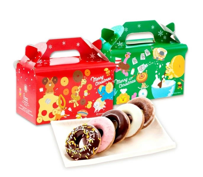 Mister Donut為今年的聖誕節推出主題系列,把3款超高人氣口味甜甜圈穿上耶誕裝,在草莓、優格、巧克力口味波堤甜甜圈灑上粉嫩色彩的繽紛巧克力製造耶誕氣氛,還有以5顆迷你版的巧克力甜甜圈做成的繽紛5Q,裝入特製的耶誕包裝禮盒,耶誕送禮剛剛好。