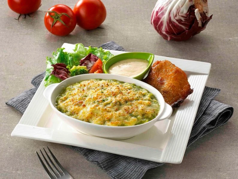 還有獨家新菜色香草烤腿排菠菜焗烤飯,專為21PLUS台北時代門市量身訂做,將菠菜打成泥,拌入薑黃飯內焗烤,搭配烤雞腿排和沙拉,健康又豐富的一餐。