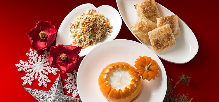 上海醉月樓(39F)廚藝精湛的料理團隊獻上一系列經典道地的滬式珍饈,以傳承數十年的功夫技法,在摩登優雅的饗食空間中,品味令人讚不絕口的巧思風味。聖誕節12/24、25及新年12/31、1/1期間,主廚戴忠麟推出多款單點美饌如「焗烤藍莓火雞」、「鹽焗烤火雞腿」、「彩椒蘆筍炒火雞片」及「竹笙雞絲燕窩南瓜湯」等滬式佳餚,,還有聖誕及新年套餐-特製八道式滬式饗宴,讓人大飽口福!