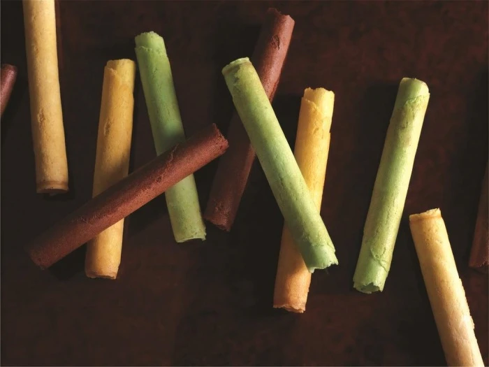 而今年更推出含有四種口味(原味、椰香、巧克力、綠茶)的精緻精選雞蛋卷,巧克力蛋卷採用法國Cacao Barry純可可粉,綠茶蛋卷採用日本宇治抹茶粉製作。色彩繽紛且香酥可口,光看就忍不住想嚐嚐!除了雞蛋卷,還有還有甜心酥、曲奇禮盒等。