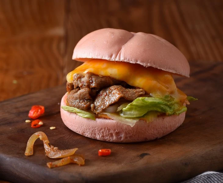 美翻天!星巴克最新的「燒肉起司堡」視覺充滿櫻花味,外頭紅麴入色的粉色軟麵包,是你一定要嚐的粉紅漢堡!