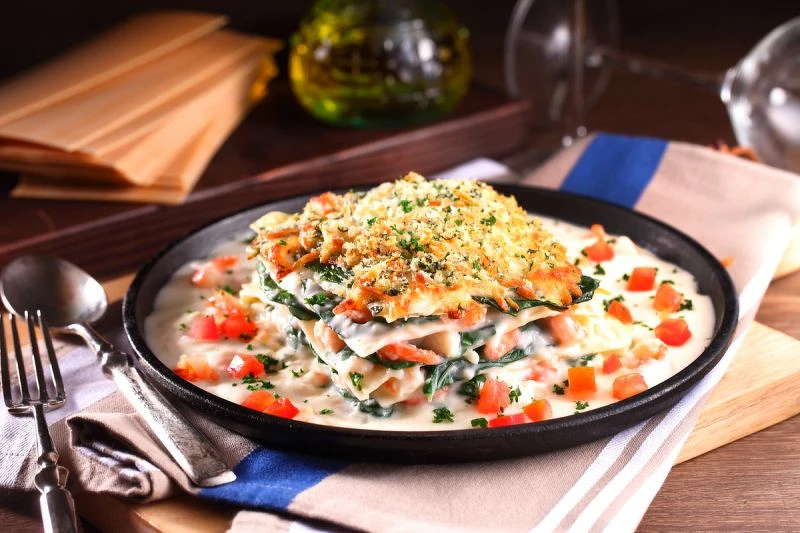 擁有鍍金般色澤的手工焗烤海鮮千層麵,將濃郁的馬芝拉起司與海鮮奶油醬深深浸潤,與味甘豐美的蝦仁、魚肉、波菜,層層疊疊淋在嚴選的千層麵皮上,起司控怎麼能錯過!