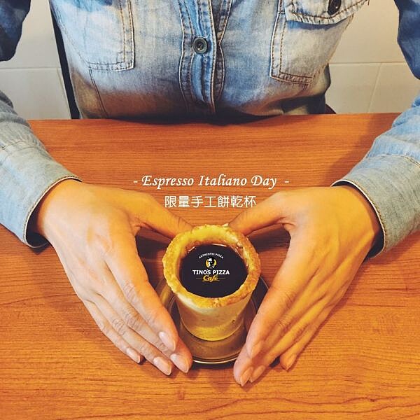 原來這次堤諾義式比薩 Tino's Pizza Café最新推出的活動,只要購買皇后瑪格比薩,店內就招待限量濃縮咖啡手工餅乾杯,這個咖啡杯外層的硬餅乾口感厚實,內層裹上特製糖霜,封住餅乾的毛細孔組合而成,在熱咖啡倒入餅乾杯時,糖霜也會稍稍融入,為略苦咖啡帶來融洽的甜味,而杯身泡過咖啡後,還會留下濃濃的咖啡香。不過由於手工製作複雜耗時,全台限量1000個送完為止。