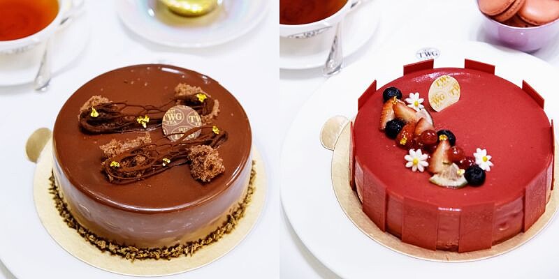 除了美食大餐,絕對少不了準備母親節蛋糕囉!TWG Tea這次推出以三款經典茗茶與兩款蛋糕的母親節套餐組合,與媽媽來個下午茶饗宴。第一款訂製蛋糕是伯爵普洱茶鑲巧克力慕斯蛋糕,佛手柑的清新味道配上可可與榛果奶油,不過於油膩的口感讓媽媽也愛上;第二款檸檬木紅茶香紅莓慕斯蛋糕,野生柑橘果實搭配鮮紅莓果、杏仁餅和檸檬木茶香,清爽的蛋糕搭配玫瑰茶,完全絕配。