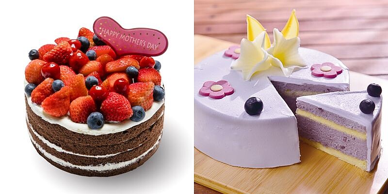 以72%純苦巧克力製成的黑巧克力莓果蛋糕,新鮮草莓與藍莓鋪在上頭,手工焦糖醬與法國草莓醬的結合,揉合出別緻的莓果風味。另外一款身為台灣人必愛的芋泥蛋糕,不只有以芋頭丁為主角增加口感,內層奶油夾心以紫薯泥為配角,把芋泥蛋糕的香氣更深入而有層次的表現出來,讓媽媽也愛上這個口味。